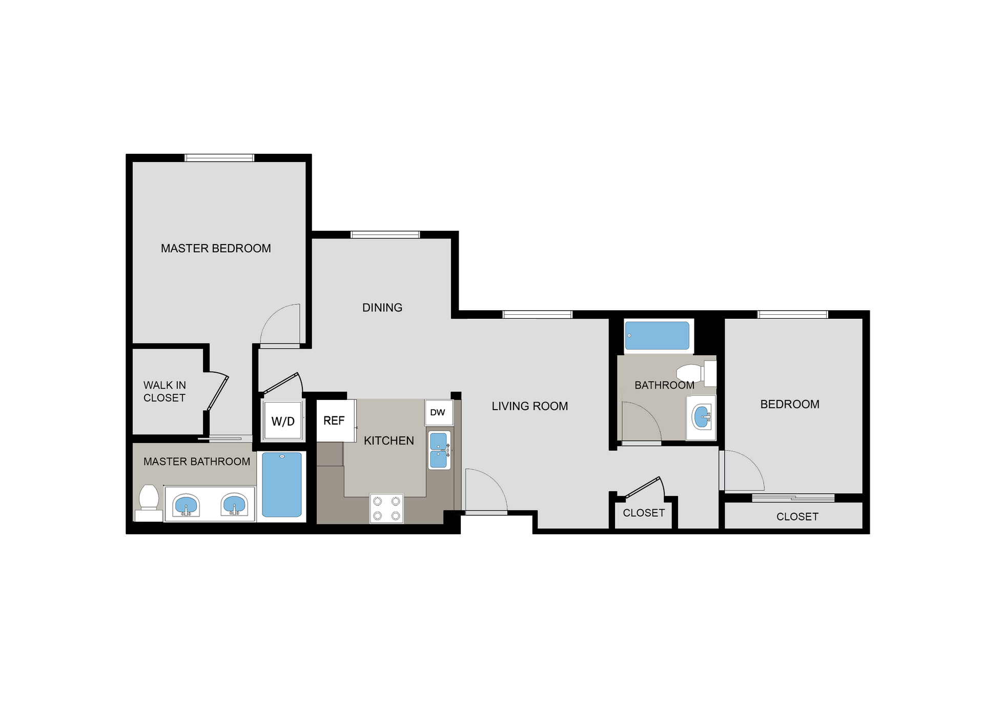 2 Bedroom 2 Bath 1042 SF Apartment with Washer/Dryer
